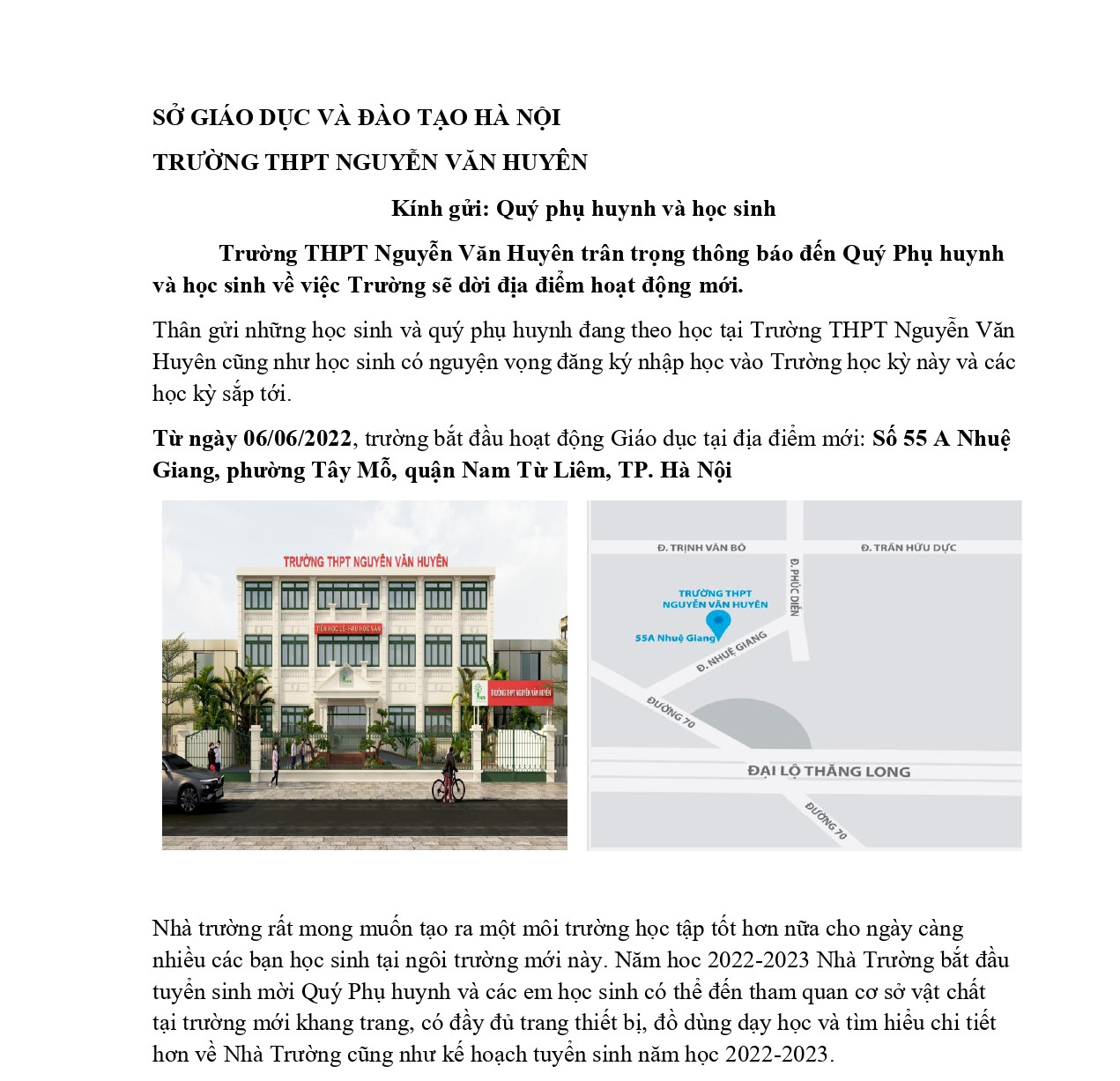Vì vậy, nhà trường xin trân trọng thông báo đến quý phụ huynh và học sinh. Kính mong quý phụ huynh và học sinh đồng hành.